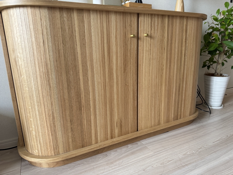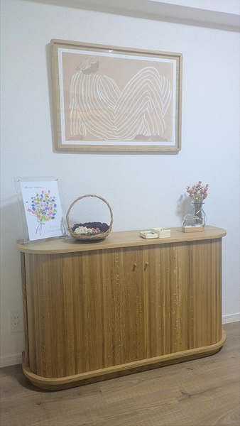 大抵の場合、キャビネットの横顔は、四角く無表情なものが多く、角が立った姿は、美しさが減るとともにお部屋に感じる緊張感の原因にもなります。