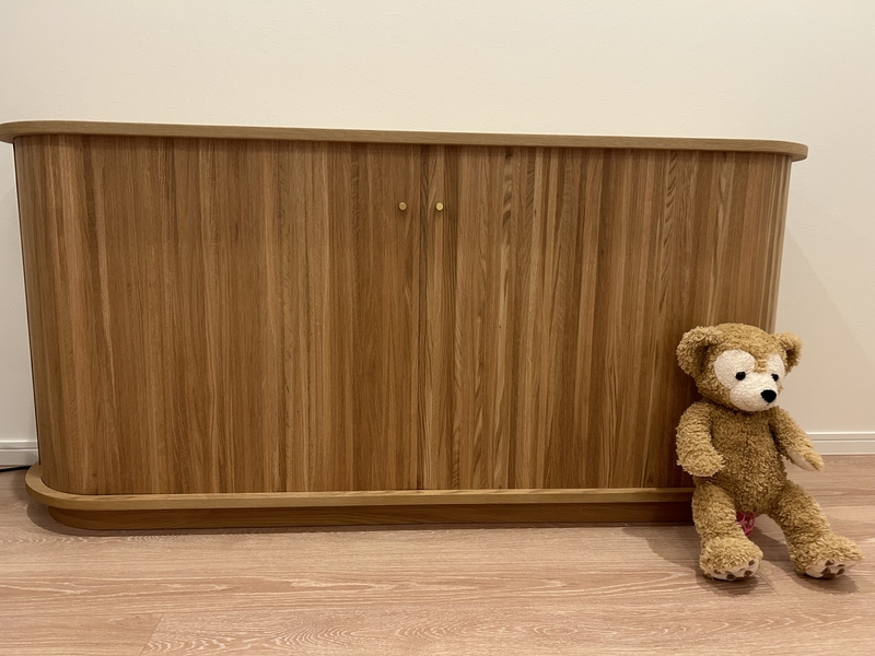 柔らかな曲線と、低く抑えた高さによって、これまでのサイドボードとは一線を画した「美しさ」を表現したのが、この新作キャビネットなのです。