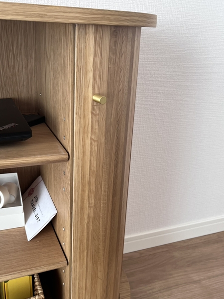 この仕様にすることで、正面から見たときに、棚板が薄く見えて、美しい印象を感じられます。