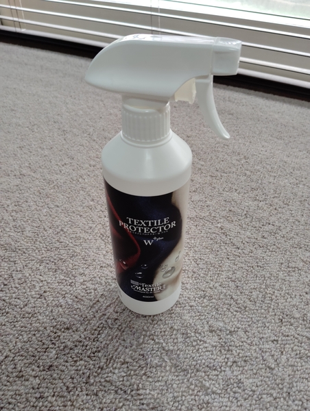 綺麗に掃除ができたら、プロテクターを塗布していきます。30cm程離した距離から、生地が軽くしめるまで均一に吹き付けてください。