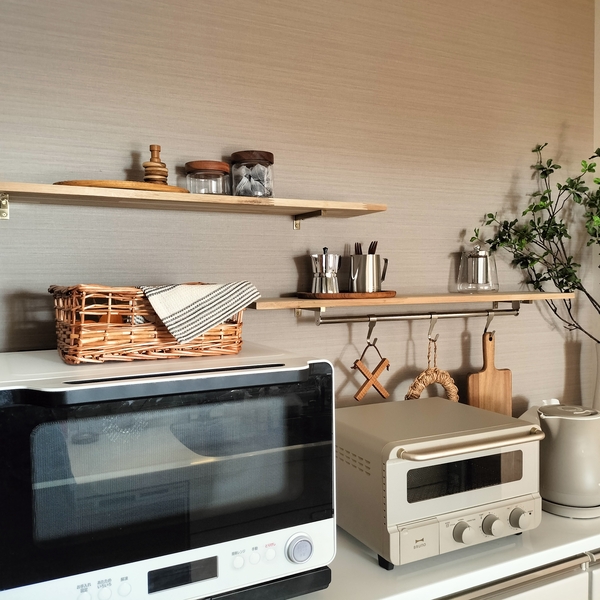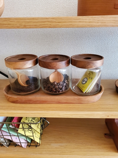 こちらは3つ分の幅のLサイズ。コーヒー豆、シリアル、砂糖など、朝食で使うものをまとめてのせています。