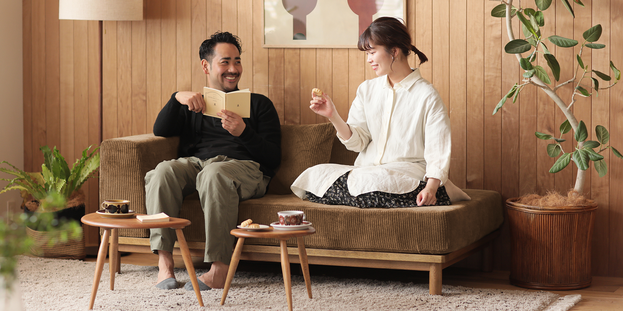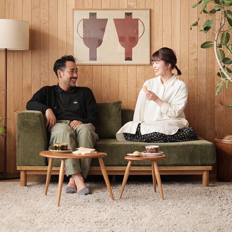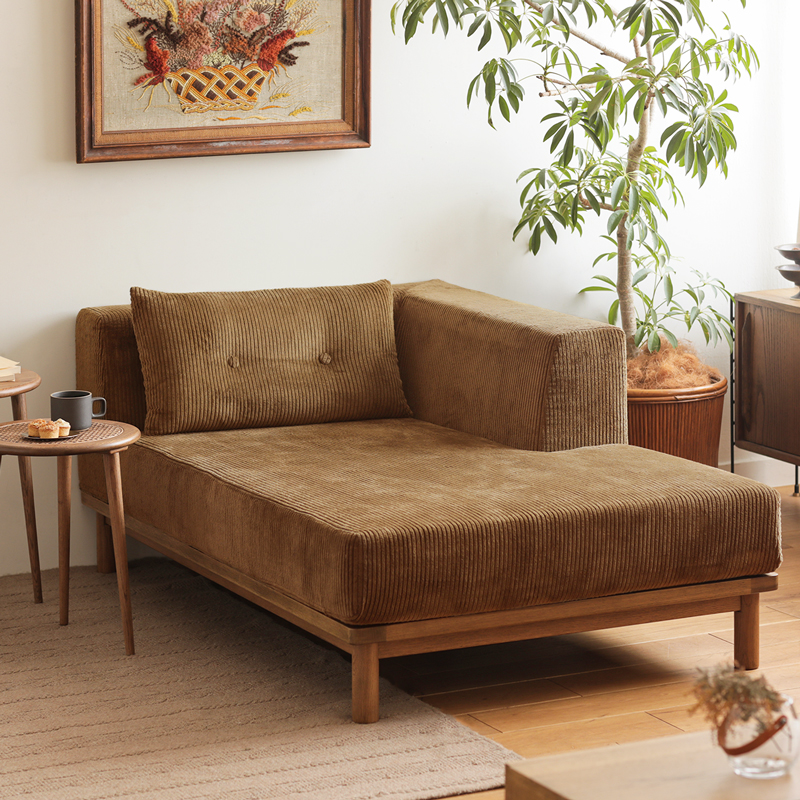 縦置きや横置きなど、自由なレイアウトが楽しめるカウチソファー。コーデュロイの味わいのある風合いが、お部屋に上質な雰囲気をプラスします。