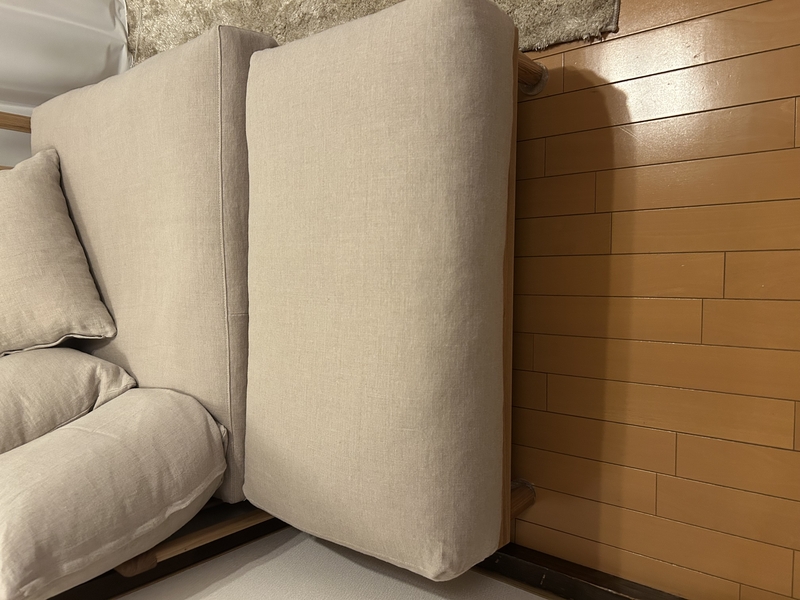 NOANAソファーは、まさにその仕様なので、フェザーながらもコシのある硬めの座り心地です。
