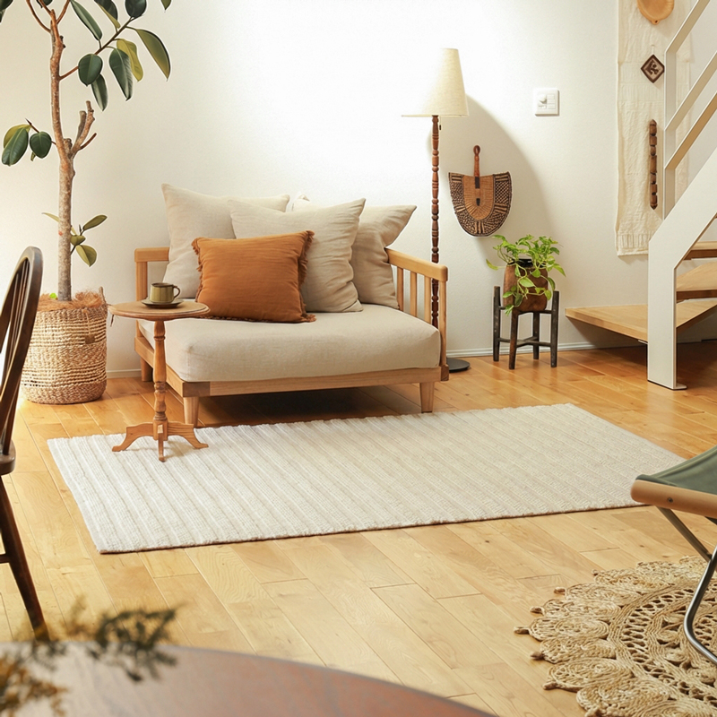 リネン生地をはじめとした明るい色味の生地との相性が良く、ナチュラルなお部屋作りにおすすめです。