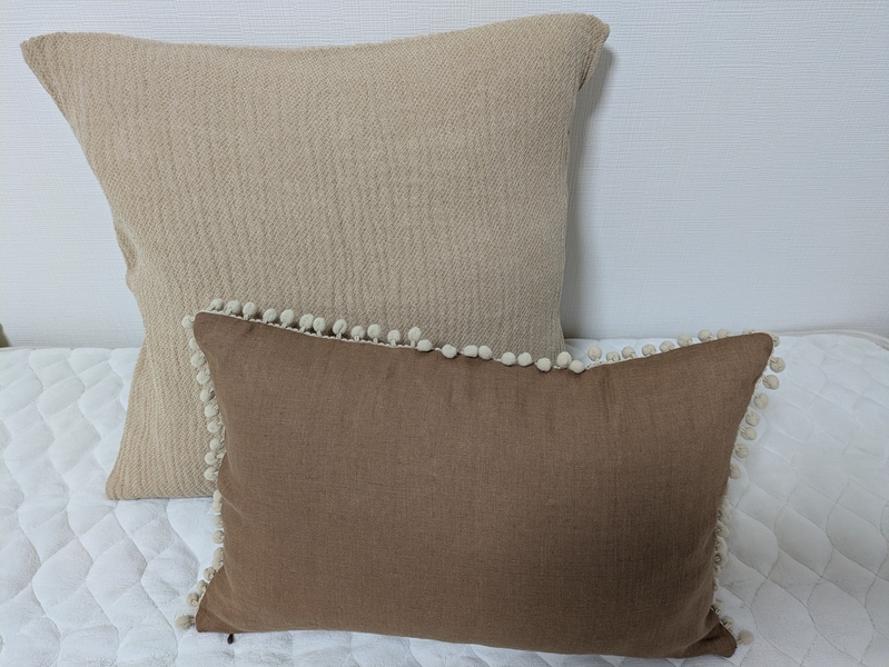 先に買っていたコニャックカラーのクッションだけだと、個人的に少し色味が物足りなくて、こちらも購入。