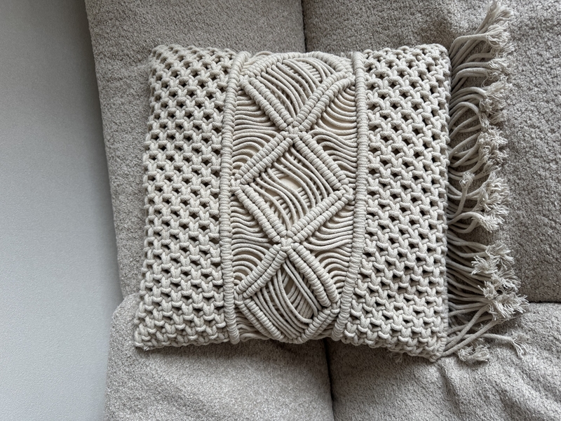 また、単色ながらも立体感があり、素材感を楽しめるマクラメは、お部屋のほどよいアクセントにもぴったり。