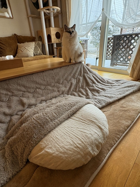 冬はこたつ、夏は麻のラグにとても合います。