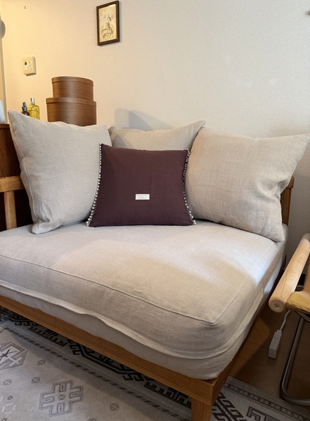 シンプルなソファーに、ポンと置くだけで、こなれた印象に。今のお部屋に、もの足りなさや味気なさを感じている方に、ぜひ選んでいただきたいクッションカバーです。