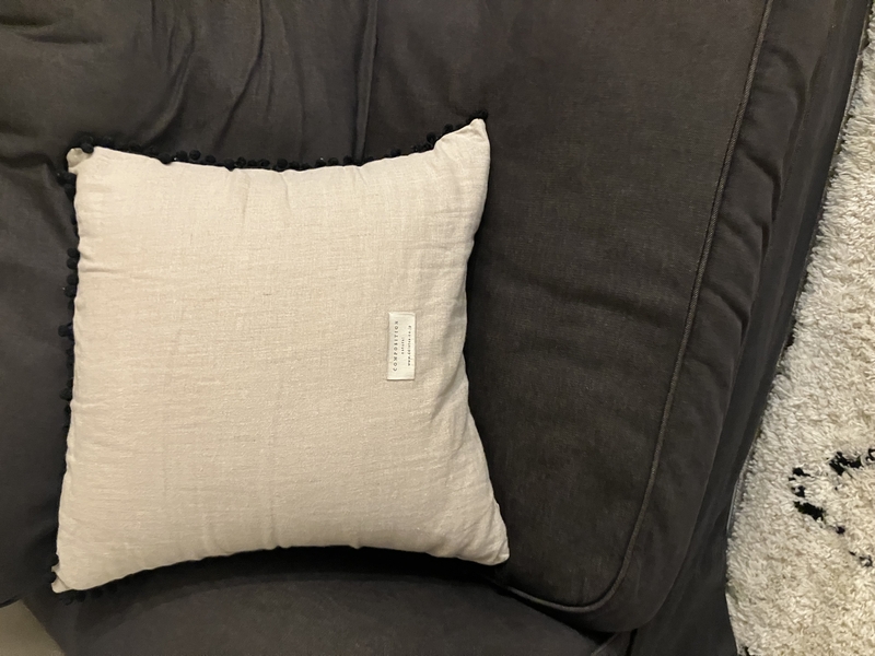こちらは、深みのあるカラー展開が魅力の「リネンクッションカバー ナトゥーラボンボン」。クタっとしたリネン生地と、小さなボンボンも相まって、上質な雰囲気です。