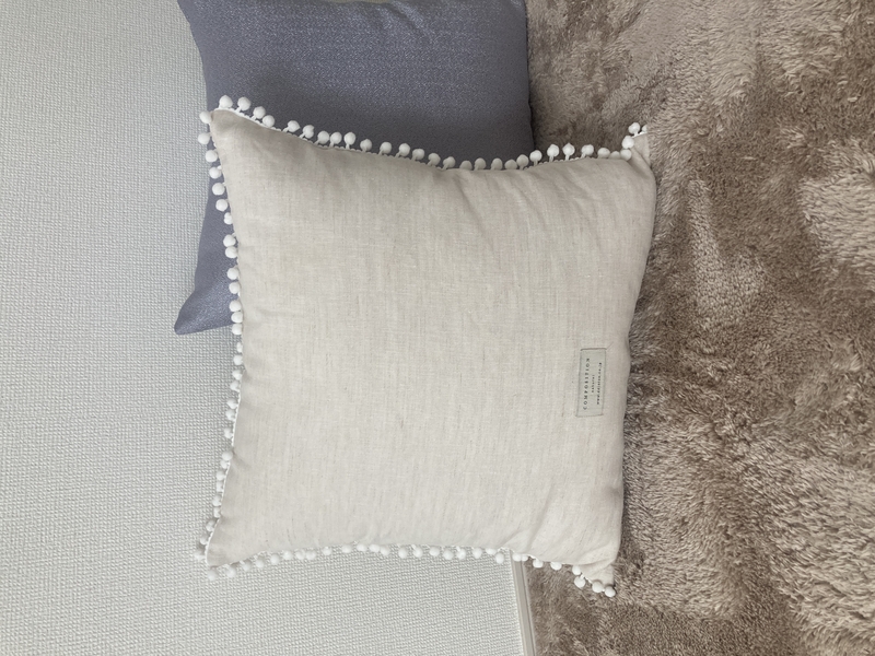また、ボンボンには、クッションと異なるカラーが取り入れられています。このワンポイントにより、お部屋で程よい存在感を発揮。個性あるアイテムと並べても、見劣りしないクッションカバーです。