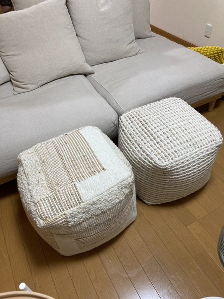 一方で、プフは小回りの利くサイズ感。家具ではなくインテリア雑貨に分類されるため、比較的手軽に取り入れやすいのも魅力です。