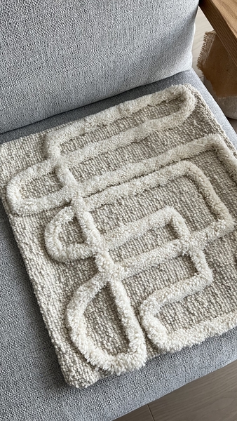 毛足の長い糸で織り込まれた迷路のような側は、ポンと置くだけで、空間に見どころを作ってくれる存在です。
