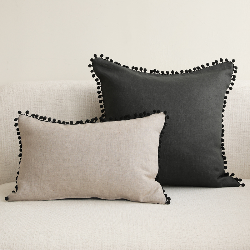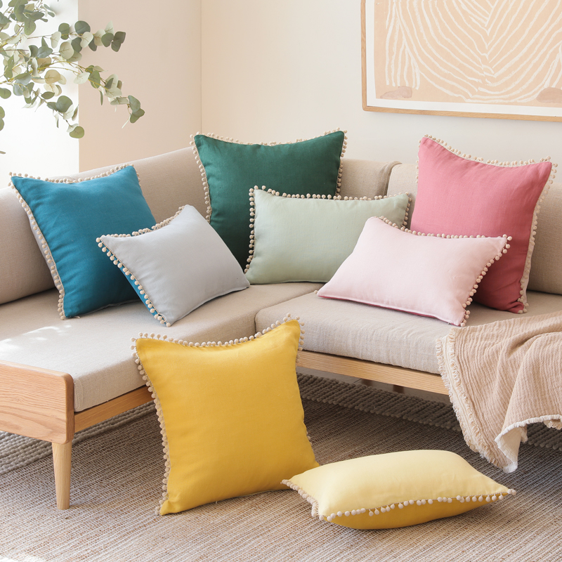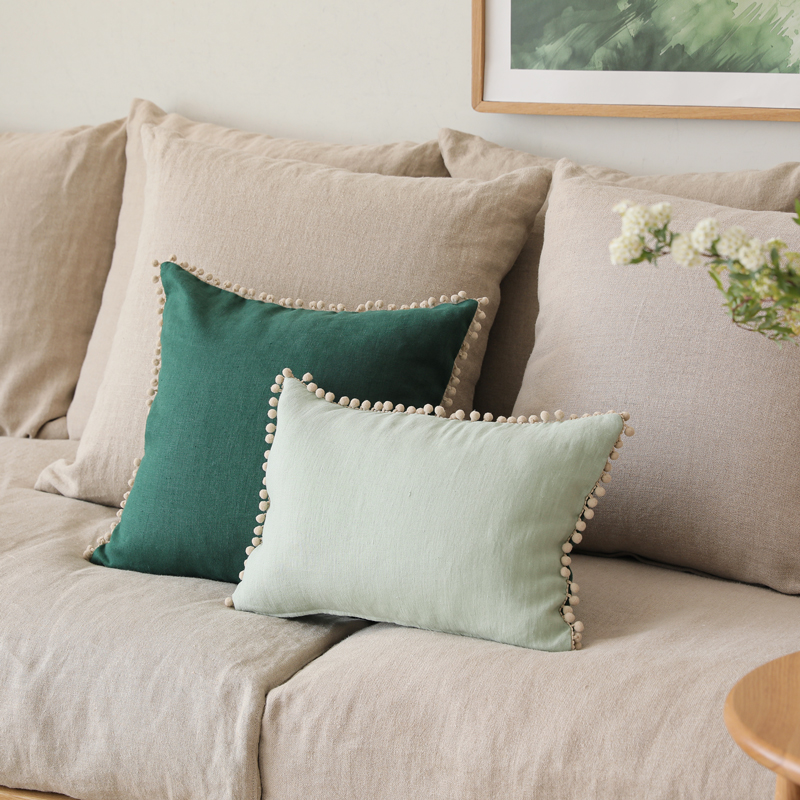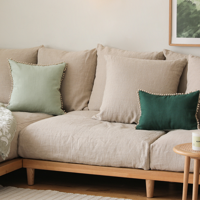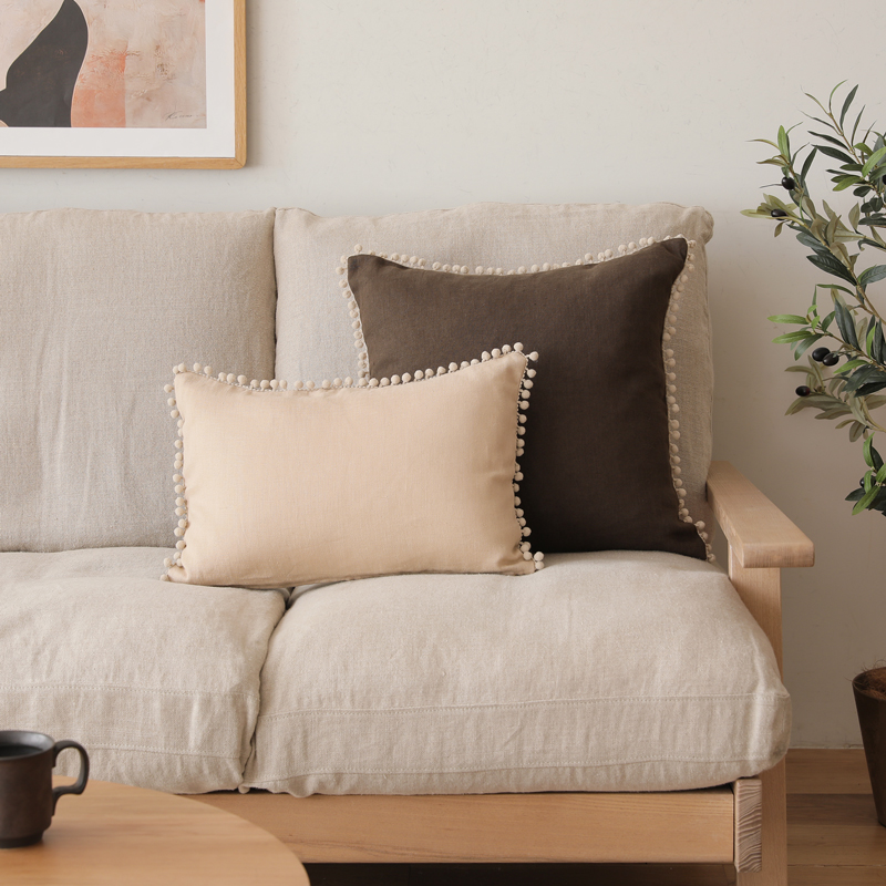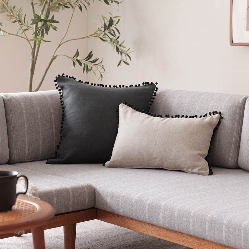そんな方におすすめしたいのが「リネンクッションカバー ナトゥーラボンボン リバーシブルタイプ」。