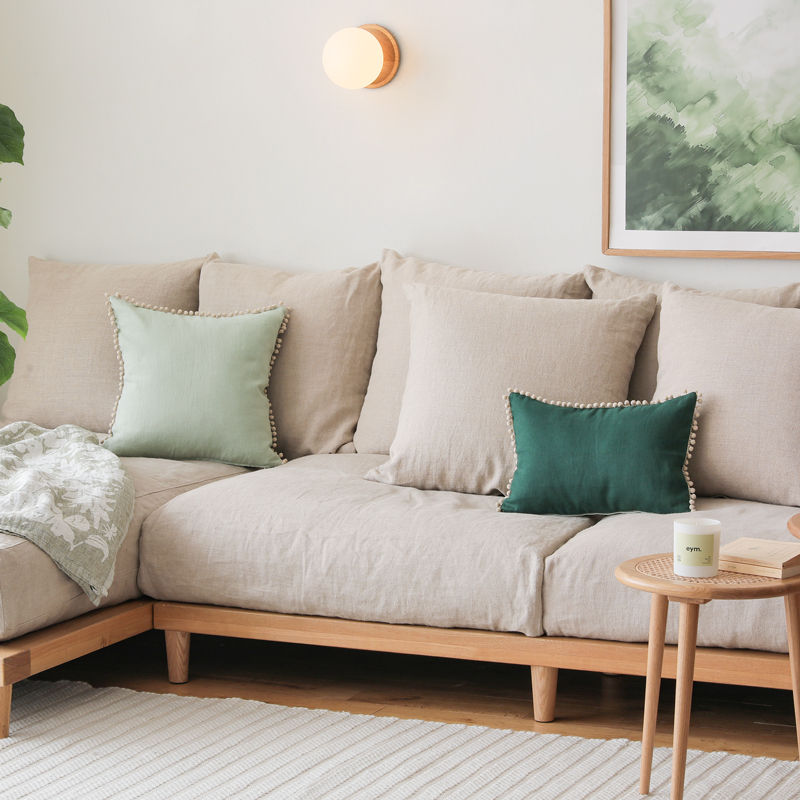 そんなときは、クッションのうち2つを同じシリーズで揃えてみましょう。同じ素材が入るだけで、空間に自然なまとまりが生まれます。