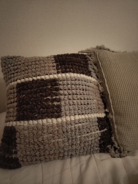 45cm×45cmのクッションサイズは最も一般的で、小さめのソファーやベッドにも取り入れやすいサイズ感です。