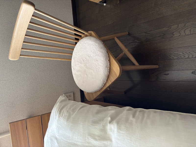 木製のチェアなので硬さはありますが、長時間座っていても疲れにくく、「まだ座っていたいな」と思える心地よさ。