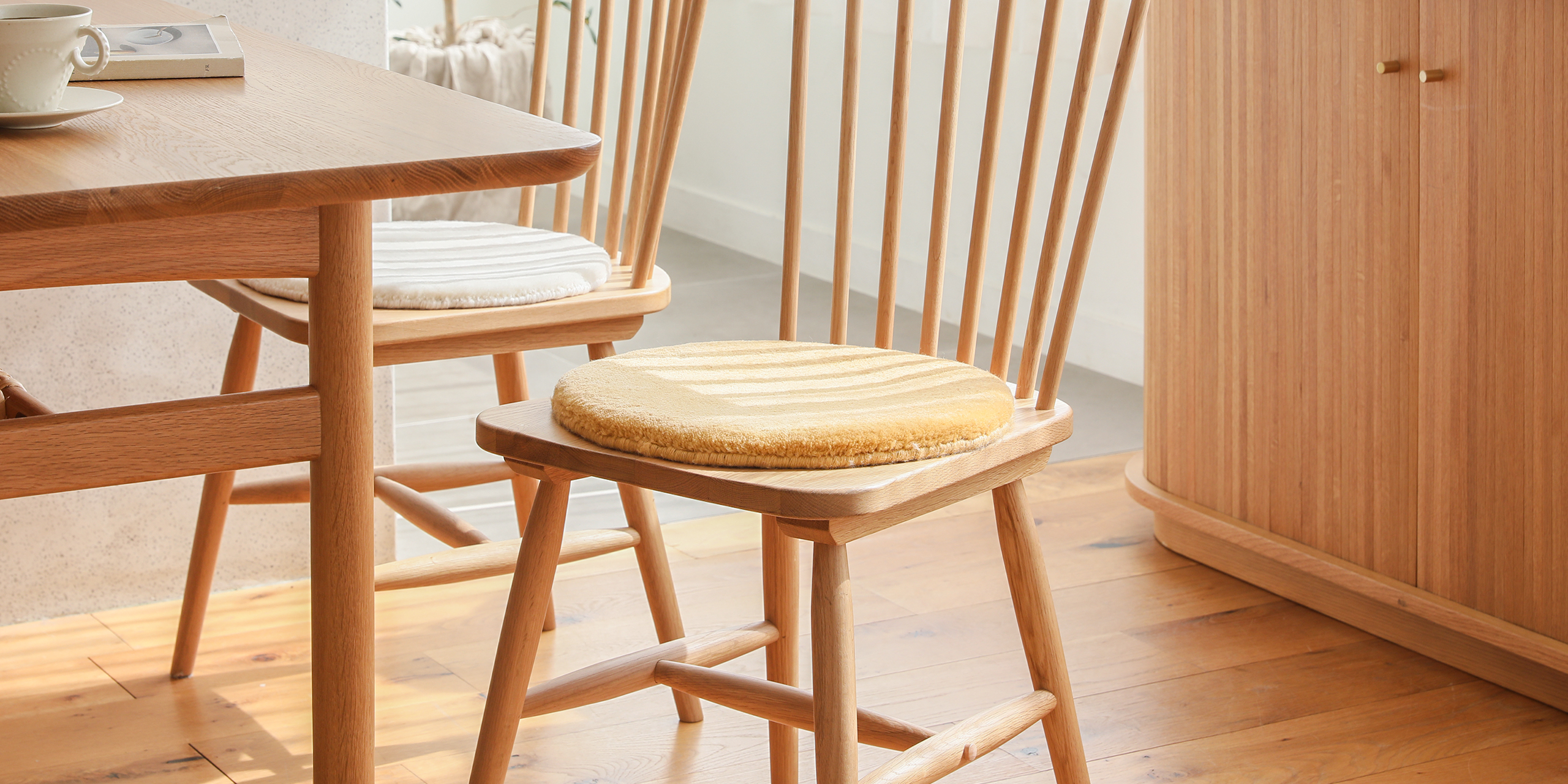 お気に入りのチェアを長く快適に愛用いただくなら、高品質なウールのシートクッションをおすすめいたします。