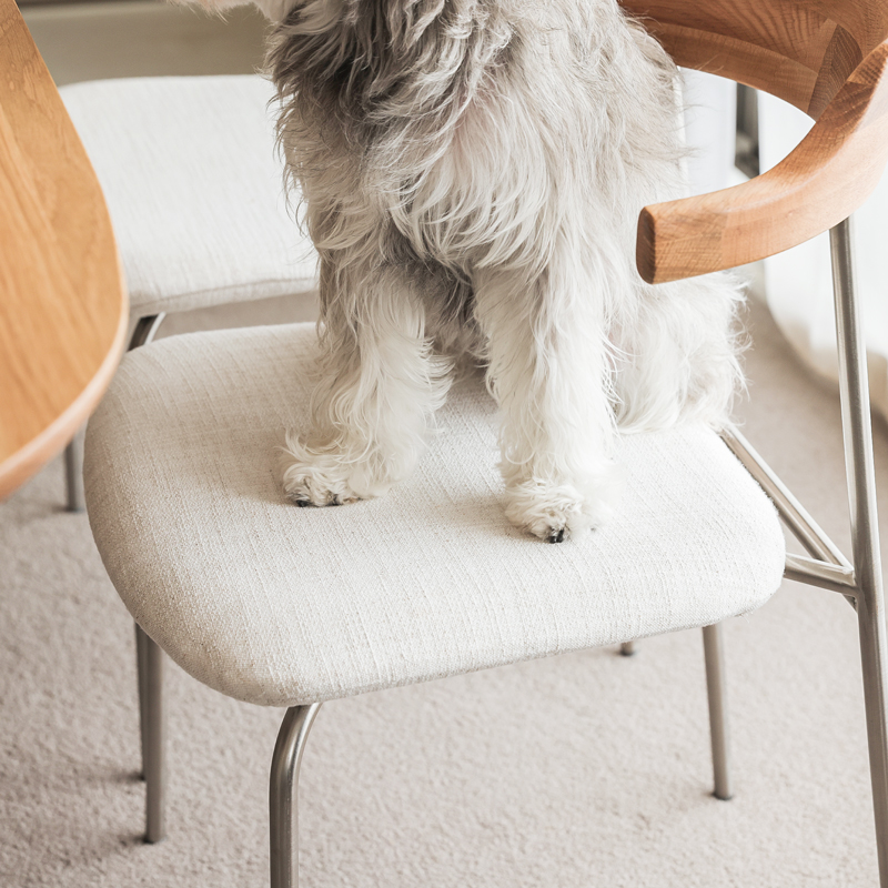 ペットと暮らす方にとって、チェアの張地選びは意外と大切なポイントなんです。