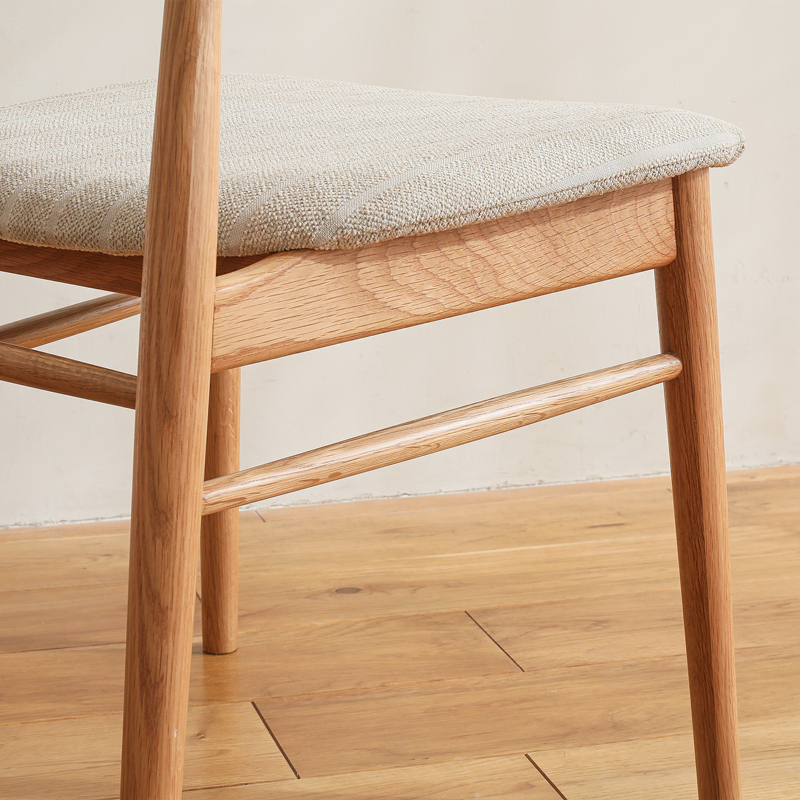 すっきりとした印象の布製カバーは、なんともさわやか。そこにオークのあたたかみが組み合わさることで、やわらかな印象を感じます。