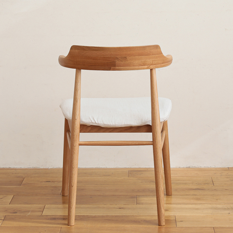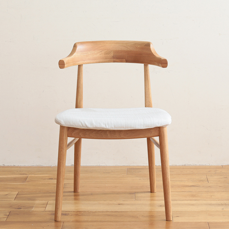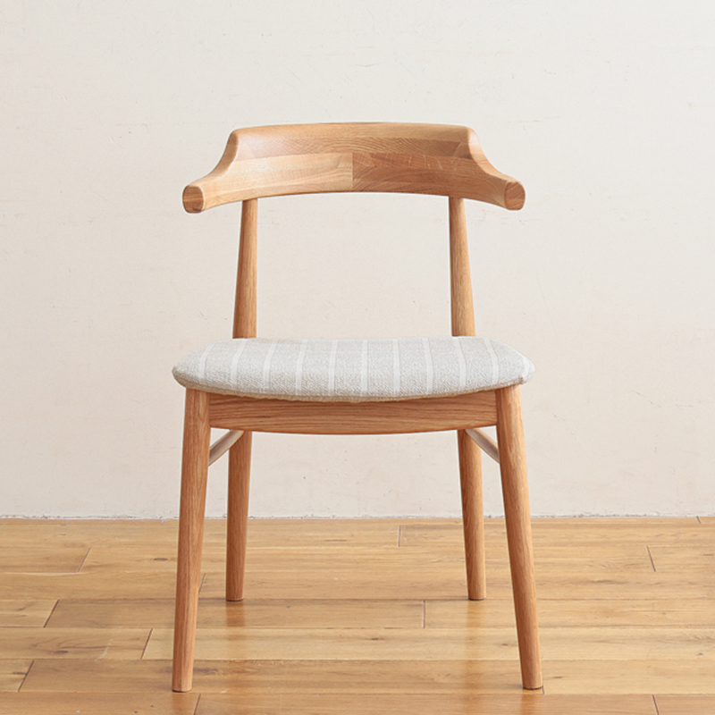 サイズはすっきり。でも、座るとゆったり。日常使いにちょうどいい、やさしいチェアに仕上がっています。
