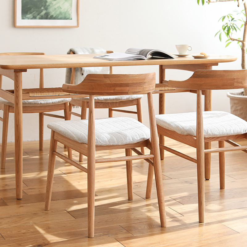 そんな場合には、ウッドフレームを4脚ならべて。木の質感が光をやわらかく受けとめ、空間にやさしい陰影と落ち着きをもたらします。