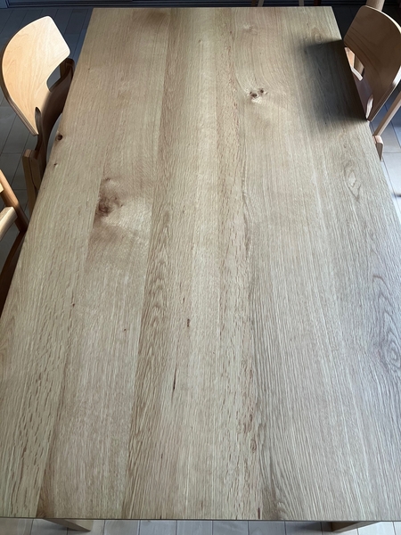 その制約の中でも、美しい天板を実現でき、シンプルながらも王道のダイニングテーブルに仕上げました。