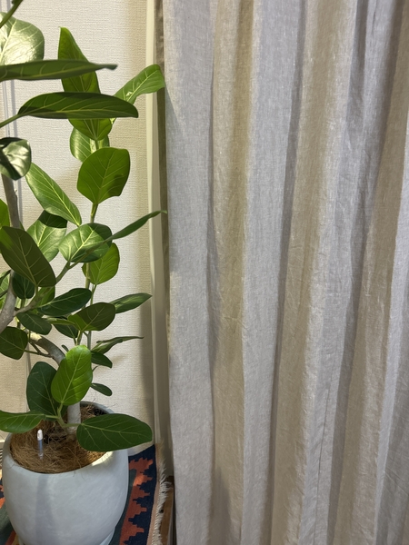 いままでニトリの遮光カーテンしか買ったことなかったですが、リネンカーテンの風味がいい感じでした。