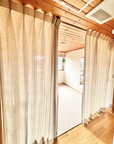 カーテンを閉めていても閉塞感がなく、穏やかな明るさが保てるのは、天然素材のカーテンならではの魅力です。