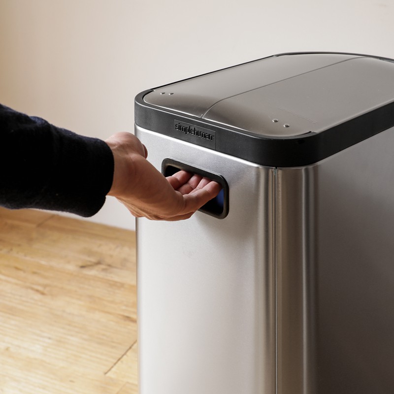 ステンレスのスマートな質感と、シンプルなデザインがスタイリッシュなステップダストボックス「simplehuman(シンプルヒューマン)バタフライ 40Lリサイクルタイプ」。