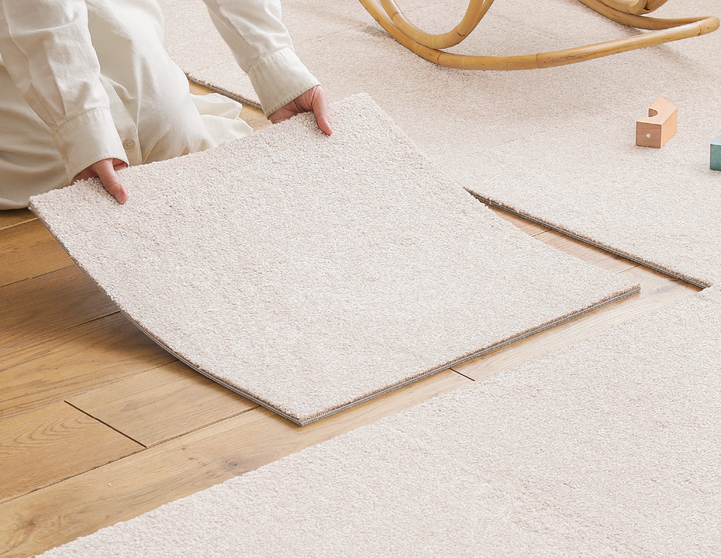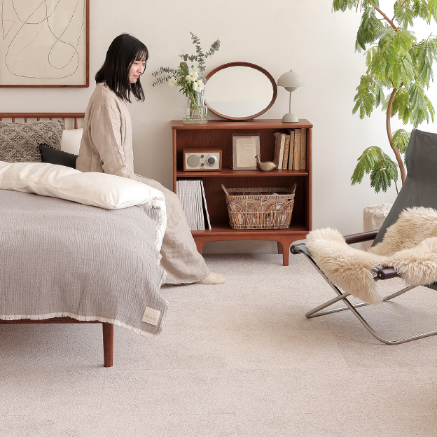 床と家具の不一致が気になったら敷き詰めカーペットがおすすめ。 隙間なく敷き詰めると、空間全体がぐっと垢抜けます。