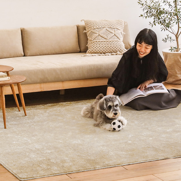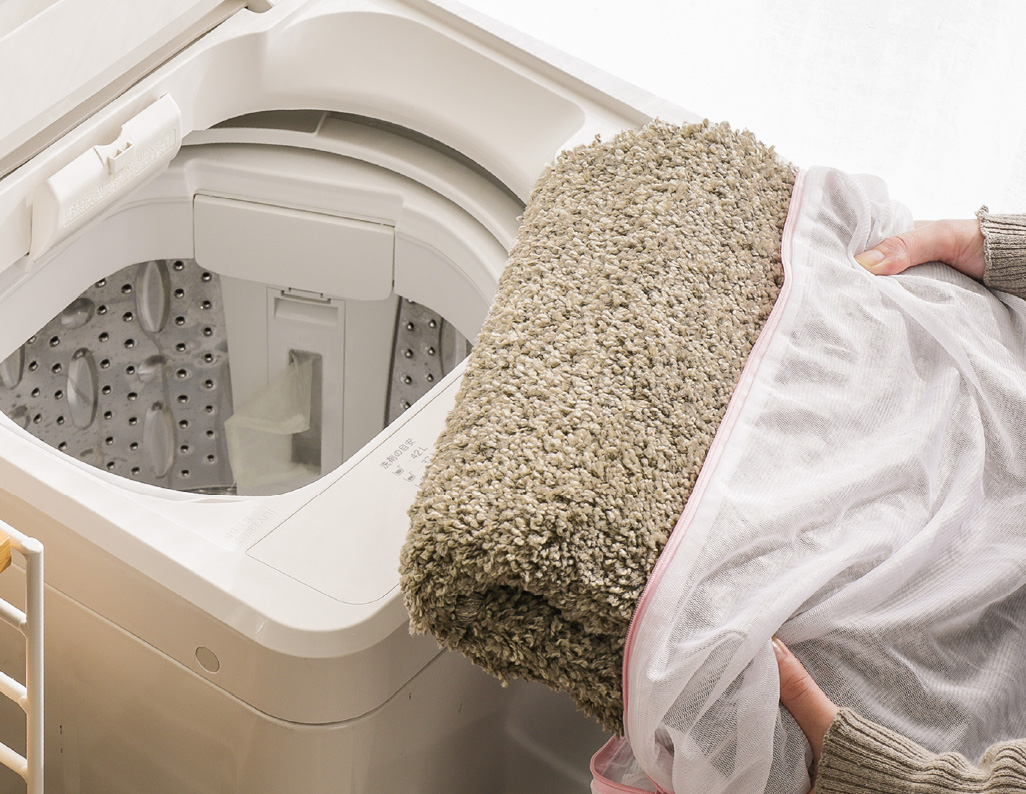 洗濯機で丸洗いできるラグなら、いつでも清潔をキープ。 気になる汚れも、自宅でさっと落とせます。