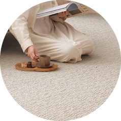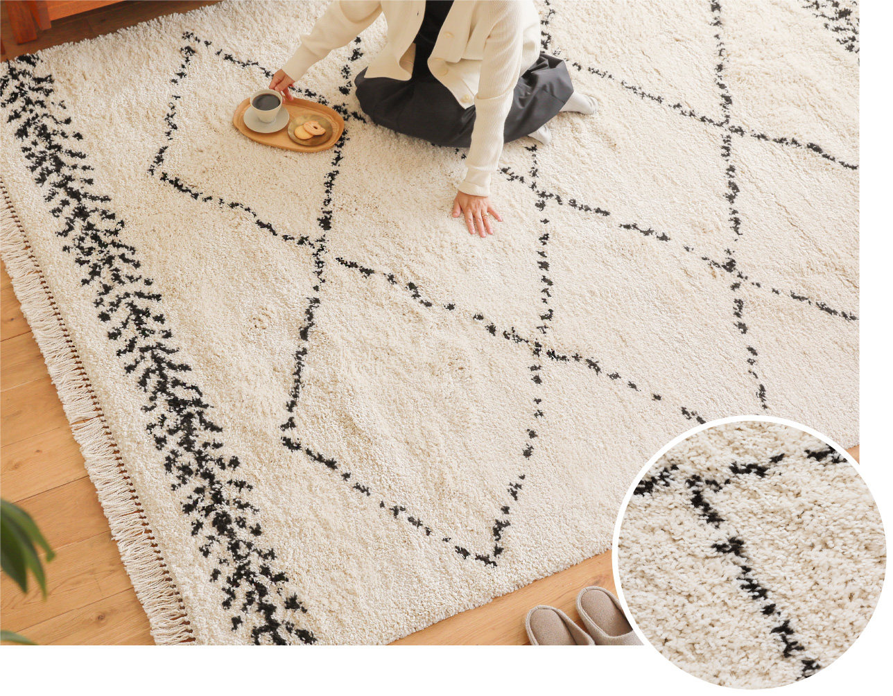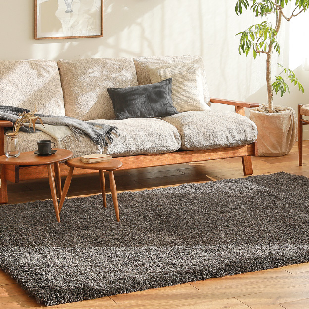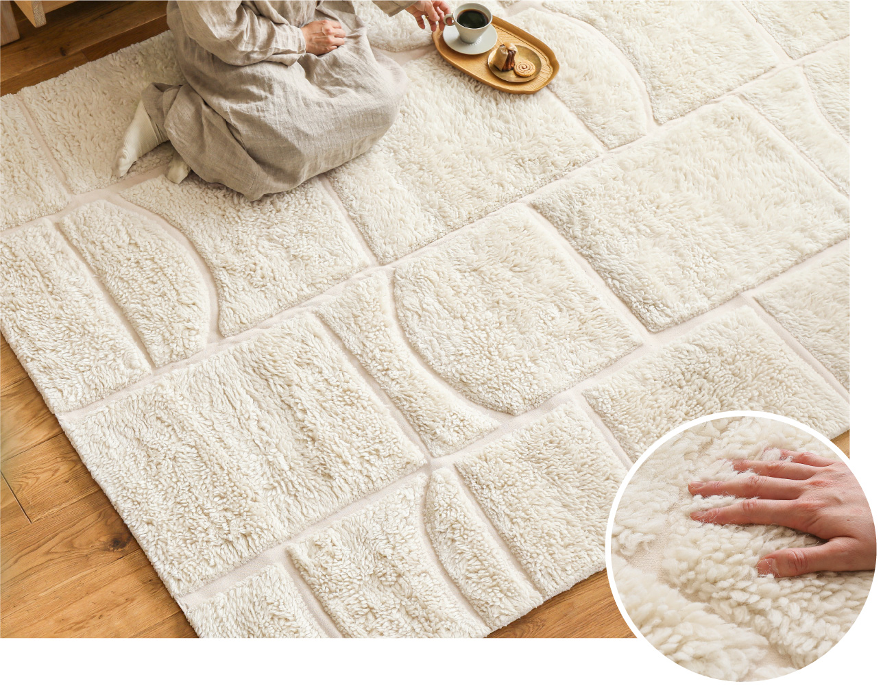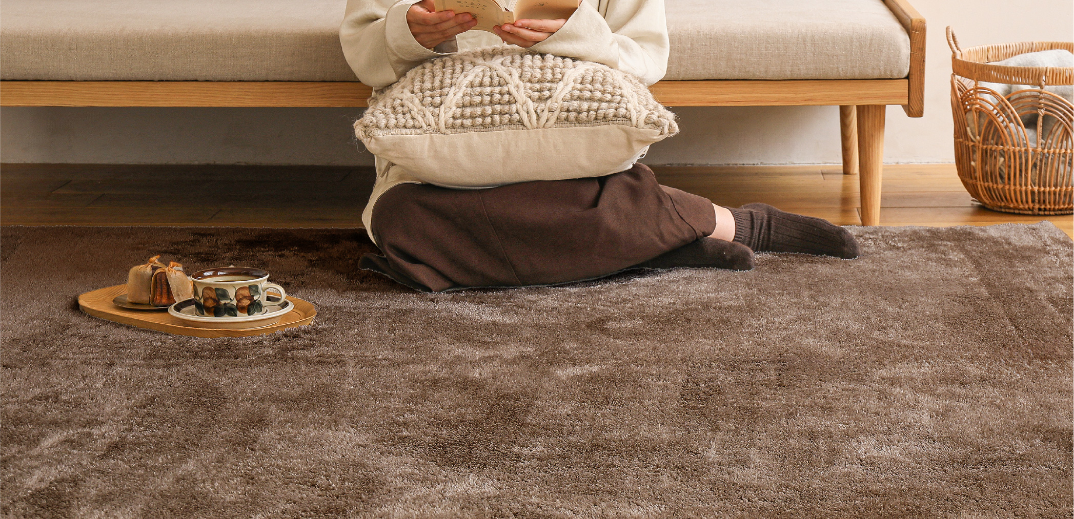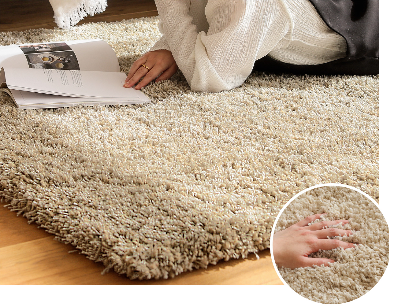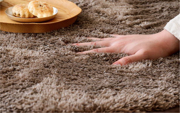 ボリュームのある毛足は、ずっと触っていたいほど心地良い肌触り。底つき感がなく、寝転がってもリラックスして過ごせます。深みある織り糸が、空間に豊かな表情をもたらしてくれます。