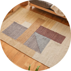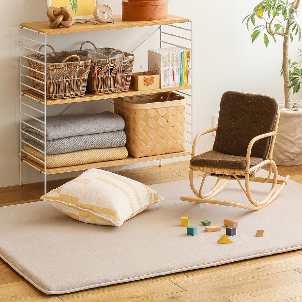 繊維に含まれる空気層が、冬は床の冷え込みを抑え、夏はクーラーの冷気を蓄えて涼やかにしてくれます。い草を使い夏に特化したアイテムも。