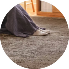 厚みがある分、床からの冷気をしっかりカバー。耐熱性に優れているので、床暖房の上でも、安心してお使いいただけます。