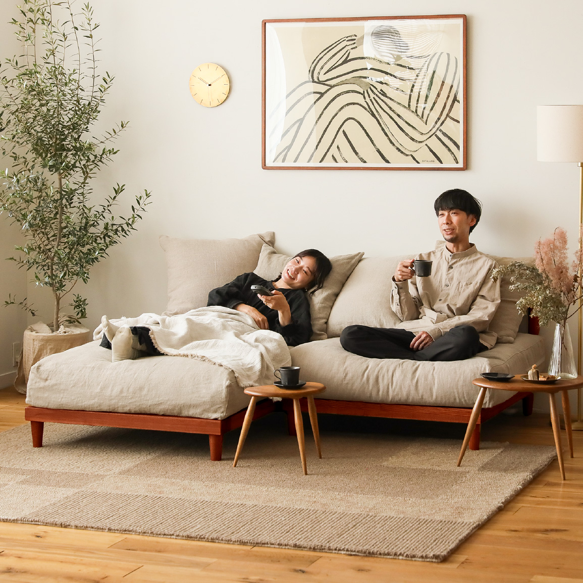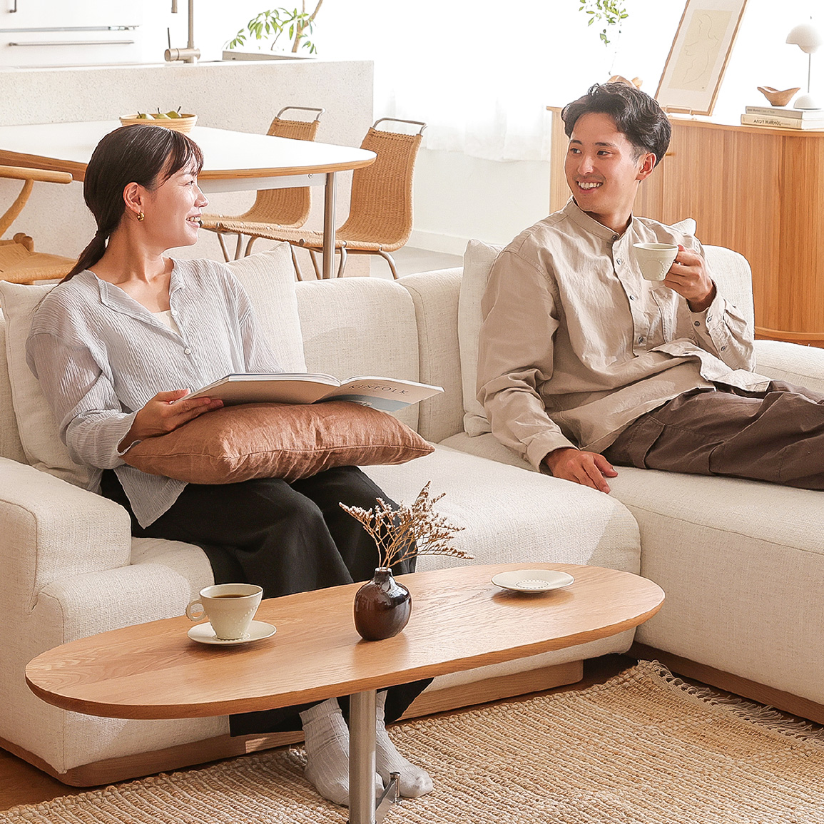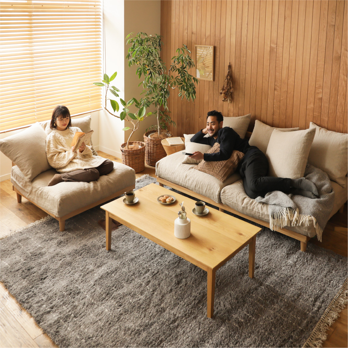 Couch sofa1〜3人でゆったりとくつろげるサイズ感。ソファーの過ごし心地がリッチになるカウチセットです。大勢で座れるのはもちろんですが、大人2人がそれぞれに寝転べるのも魅力。お互いのスペースを気にすることなく、休日のくつろぎ時間をゆったりと過ごせます。