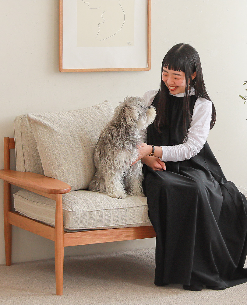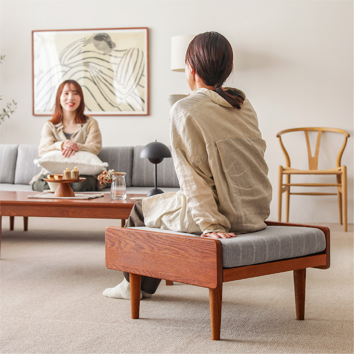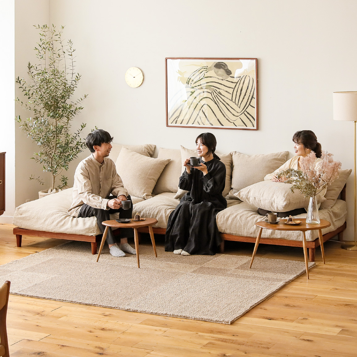 普段はオットマンやソファーに横付けして使いながら、来客時には使い方を変えてお客様用のソファーにすることも。臨機応変にマルチな使い方ができるのも魅力の一つです。
