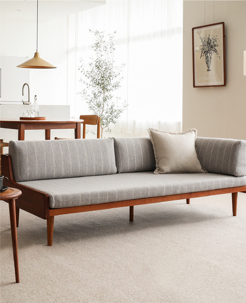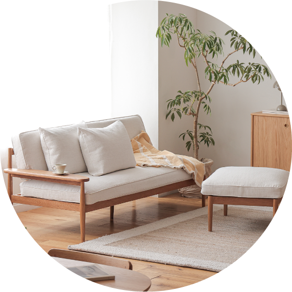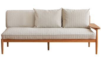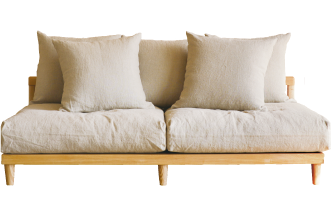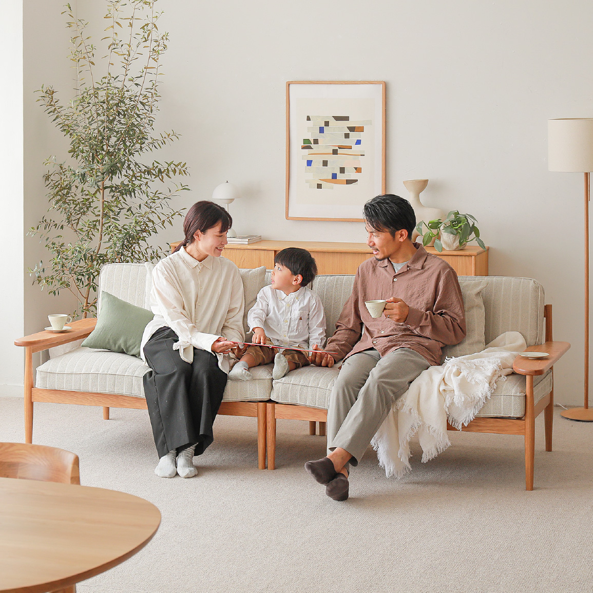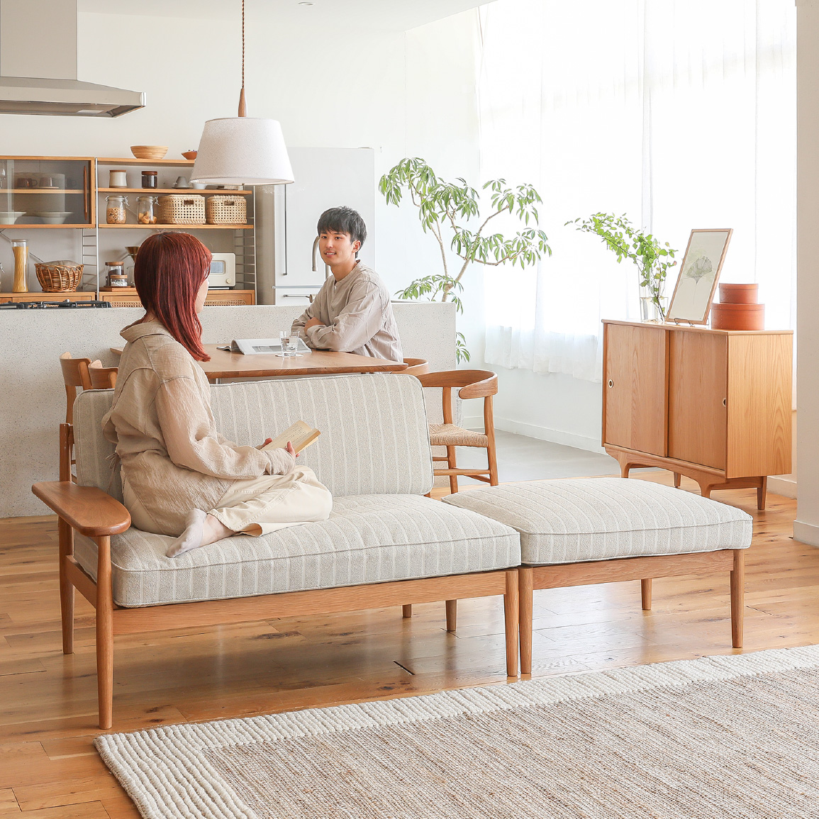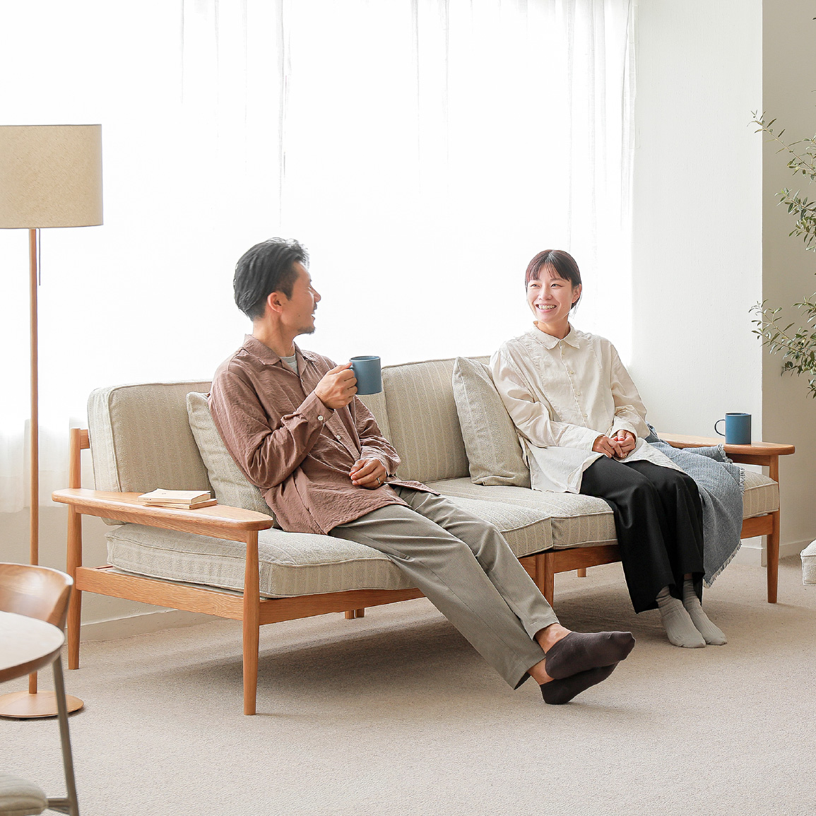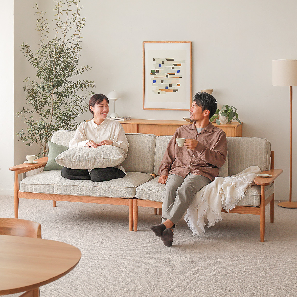 1.5 seater sofa全長240cmと、幅180cmの3人掛けタイプより大きなソファーの組み合わせ。木製フレームの温もりある意匠性はそのままに、みんなでゆったり座れる快適性も兼ね備えています。