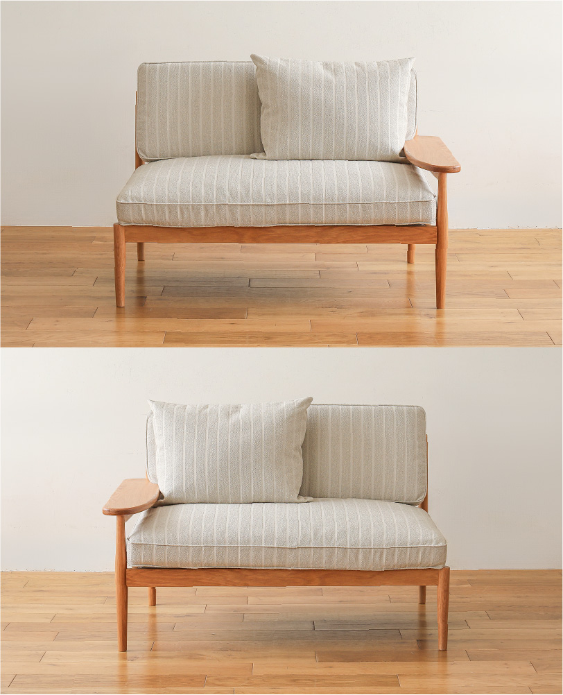 片アーム仕様になっており、アームがない方に、新しいソファーを横づけすることができます。利き手やお部屋に合わせて、右と左をお選びいただけます。
