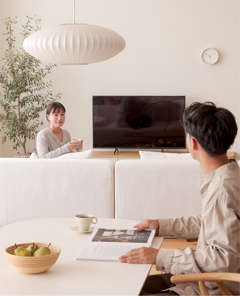 一緒にテレビを観ることも出来ますし、それぞれ別のことをしていても、しっかりパーソナルスペースを確保できるのが、うれしいポイントです。