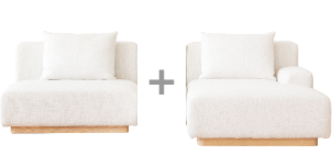 Couch sofa「1.5人掛け」「1人掛け」「カウチ」をすべて組み合わせると、開放的なロングカウチに。横幅は305cmと広々。3世帯でお住まいのご家庭や、よくお客さまをお家に招く方におすすめです。