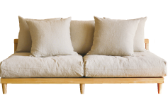 ソファー自体がシンプルのため、色あざやかなクッションやブランケットなどのアイテムを合わせていただくと、色味を美しく引き立ててくれます。