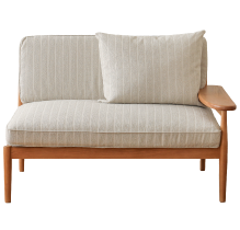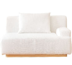 1.5 seater sofa横幅は215cmで、2人から3人でゆったり座るのにちょうどよいサイズです。「大きすぎるソファーは置けないけれど、寝転がれるくらいのゆとりはほしい!」という方に、おすすめです。お部屋のレイアウトに合わせて、1.5人掛けのアームは左右どちらかを選んでいただけます。