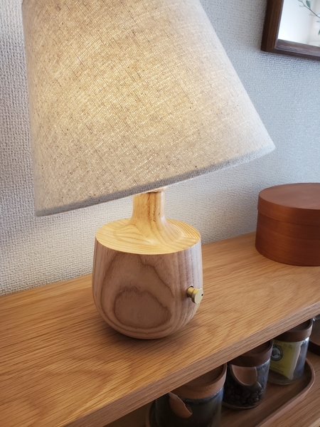 ぽってりと丸い木製部分の中にバッテリーが仕込んであり、そのバッテリーの出力を調整することにより、調光することが可能です。