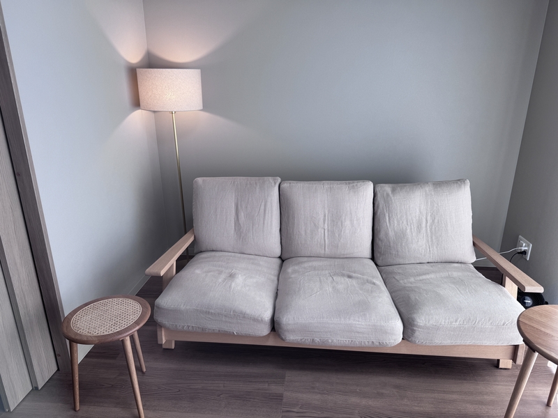 ソファーで隠しているので許容範囲ですが、スイッチとコンセントの長さや目立ち具合が少し気になります。