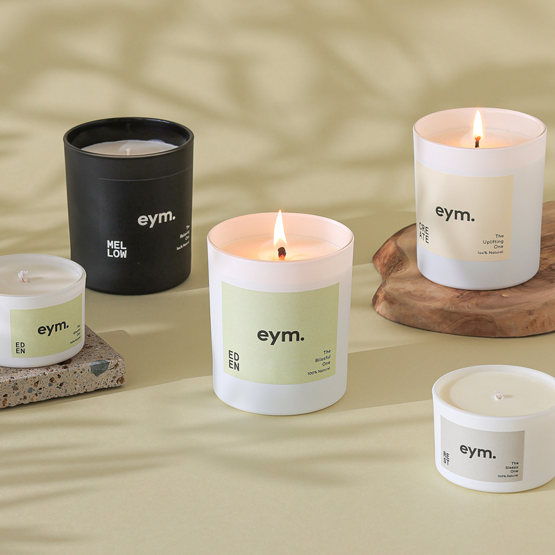 このアロマキャンドルは、Eym Naturals(通称eym.)というナチュラルフレグランスブランドから生まれたもの。