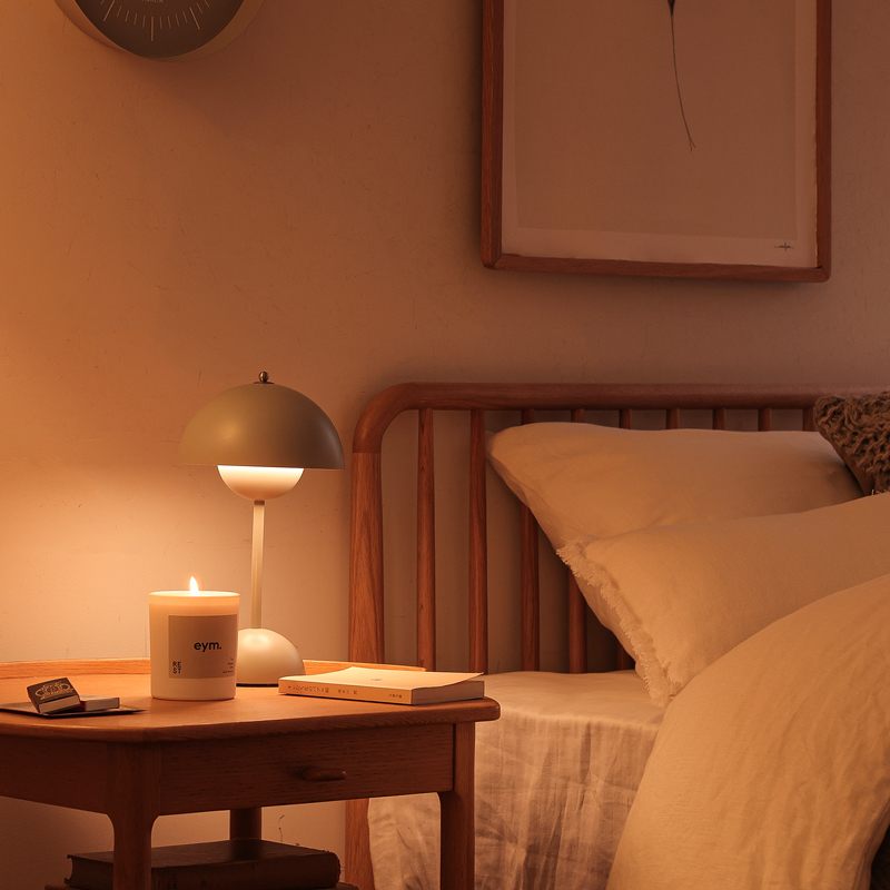 眠りにつくまでのベッドで過ごす読書タイムやストレッチの時間。Restの香りに包まれたお部屋で一日を締めくくれば、何気ない1日に満足を感じられるはず。
