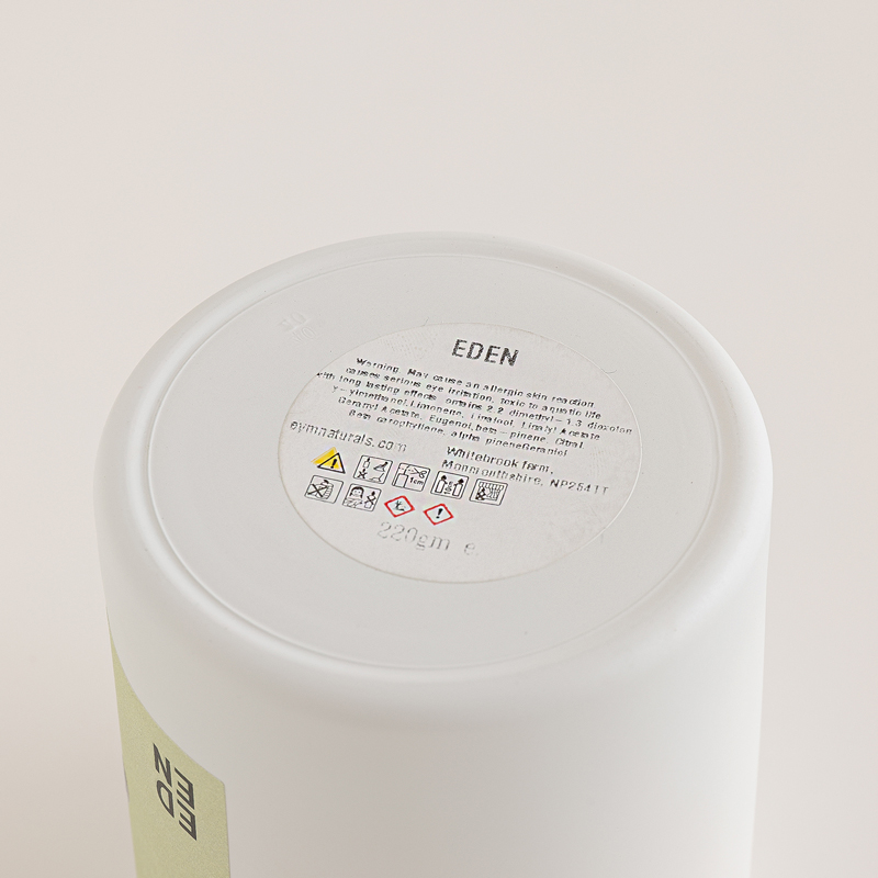 「Eden」、「Create」、「Rest」の3つは、ホワイトカラー。そこに、香りごとに異なるニュアンスカラーのロゴデザインが、程よい存在感を醸し出します。