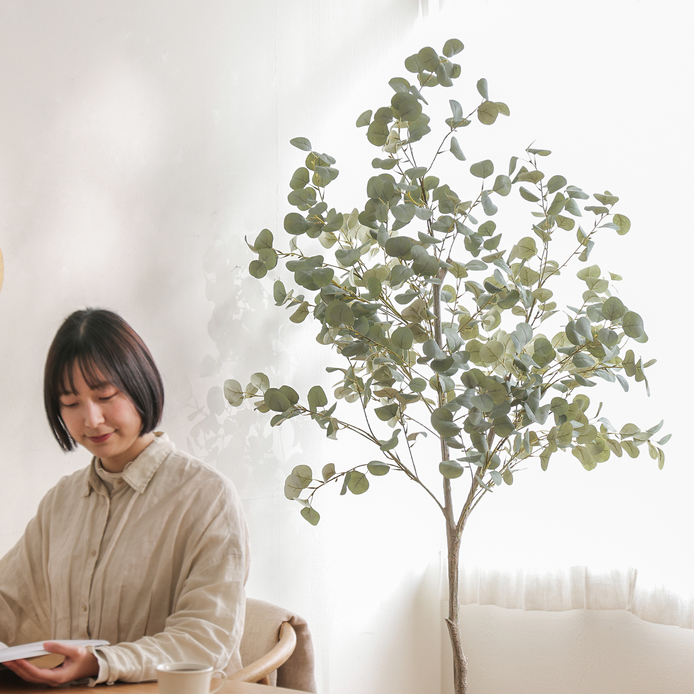 「フェイクグリーン ユーカリ」は、枝や葉の向きを手で自由に整えられるのが大きな魅力です。