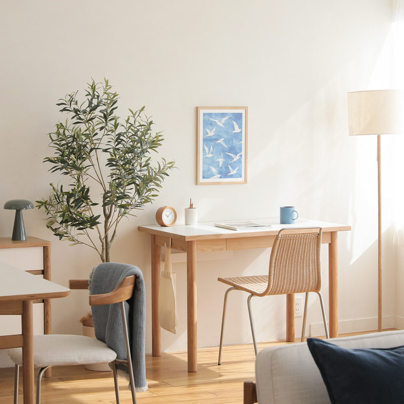 集中力が求められる書斎などの作業場所では、安らぎを感じさせるオリーブがおすすめ。デスクの横に置くと、バランスを取りやすいです。