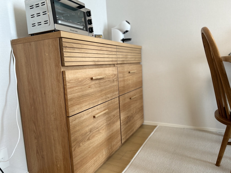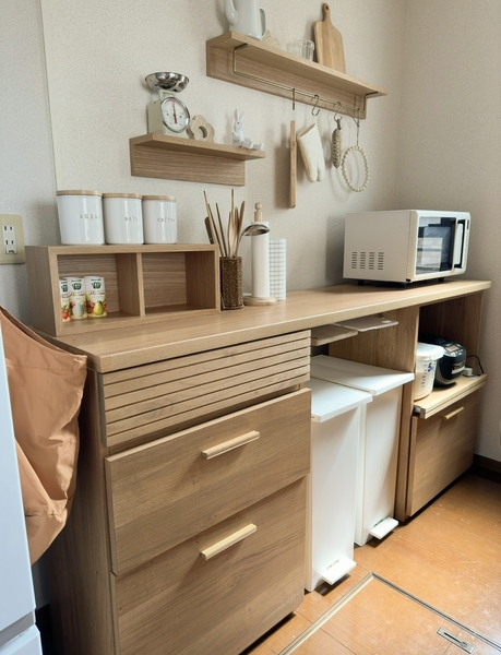家電を並べた方が使いやすいと考え、こちらのカップボードを選びましたが、空間がとても広く感じられるようになりました。